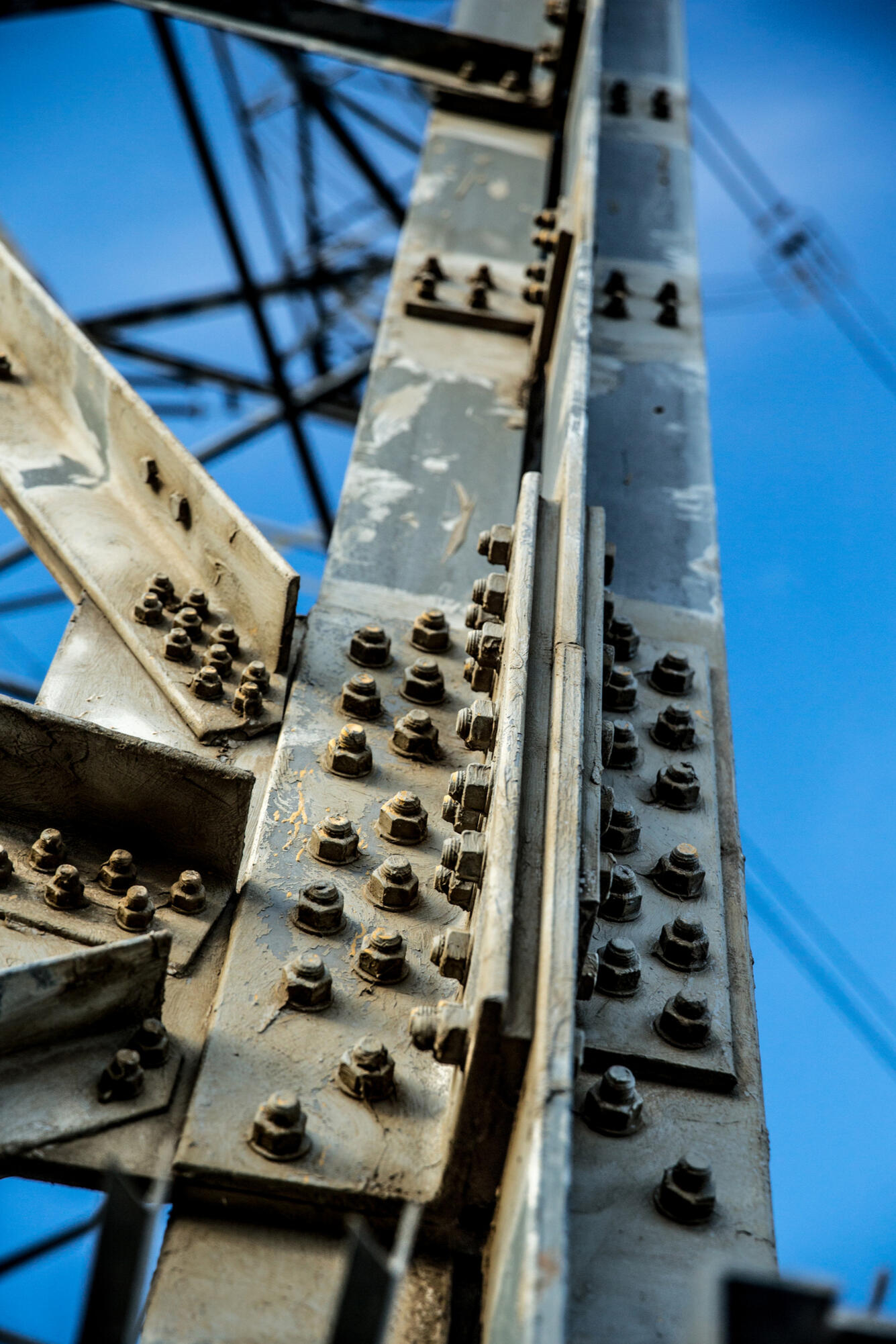 Bolted steel connection on tower support — typical inspection focus.